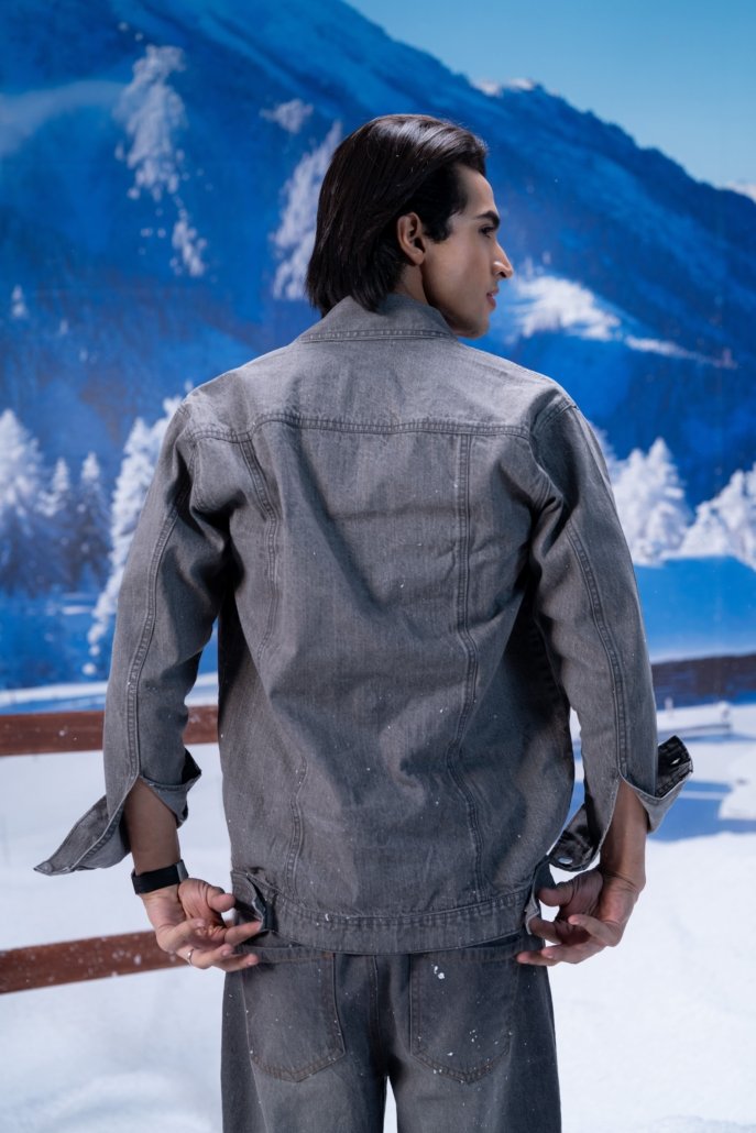 -grey acid washed denim jacket